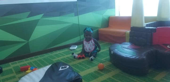 Most of the major cruise lines have a separate play section for the kiddos. Most will let you drop the kids off for the day or even during the evenings so that you can have adult time. Unfortunately, our girl is too young to drop off…However we did take advantage of the facilities to allow her to play w/the toys and have something new and different to see.